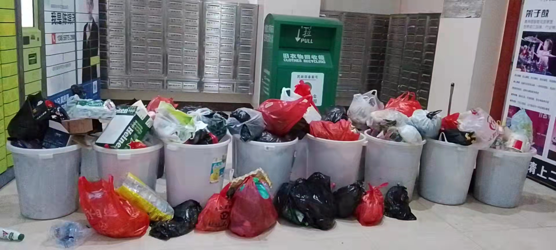 疫情期间,受封控隔离影响,环卫工、清洁工大量减少,而封控区居民居家期间购物用的箱子、塑料盘、塑料袋等生活垃圾有增无减,垃圾清理运送工作成了小区疫情防控的一个重要难题。同样的问题也困扰着封控中的刺桐明珠小区,整个物业仅剩1名保洁人员,不到两个小时,各楼栋的垃圾已堆满,垃圾转运站也早已堆积成山,大门紧闭。24小时驻点在这里的泉州市统计局抗疫先锋队黄延聪队长,看在眼里急在心里。他心里非常清楚,疫情期间封控区垃圾处理不同往日,一定要及时进行专业消杀,专车专用闭环管理,稍有不慎就可能引发细菌病毒的交叉传播,是疫情传播的潜在风险点。