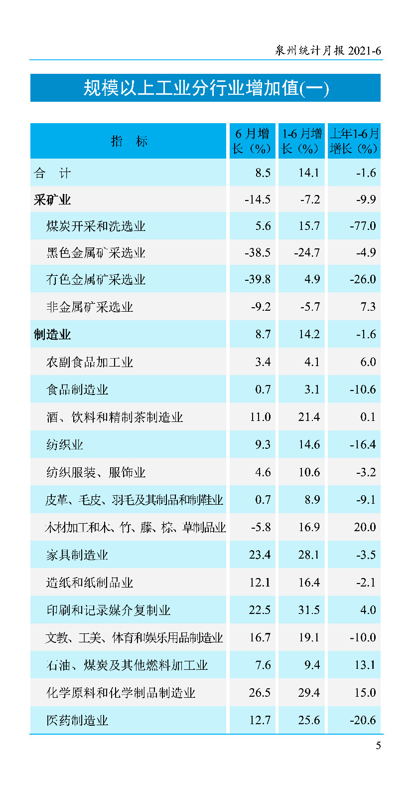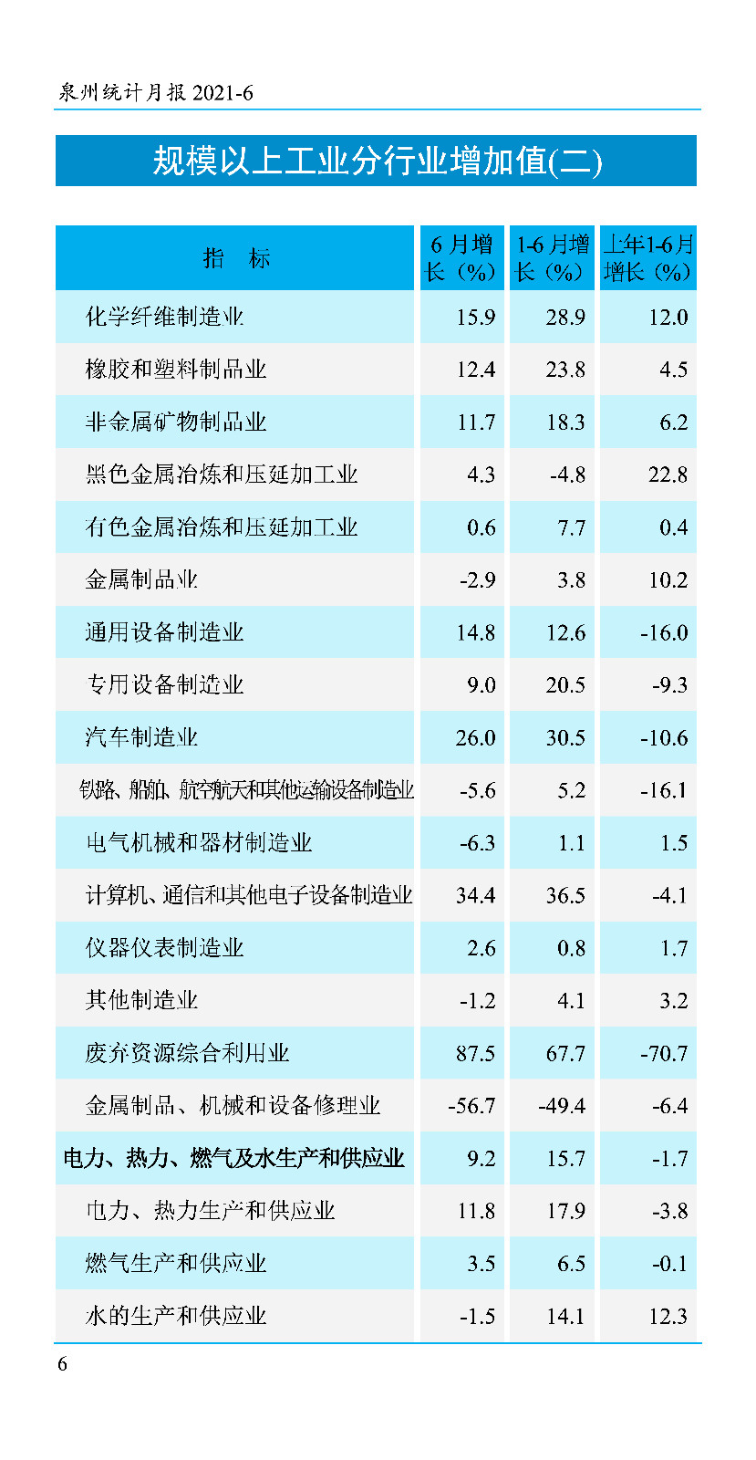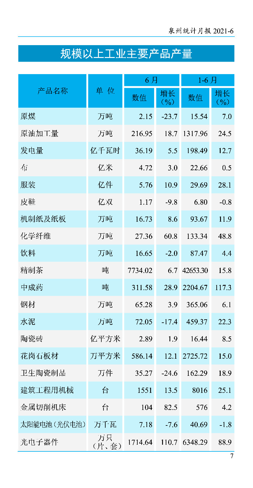 2021年6月份统计月报