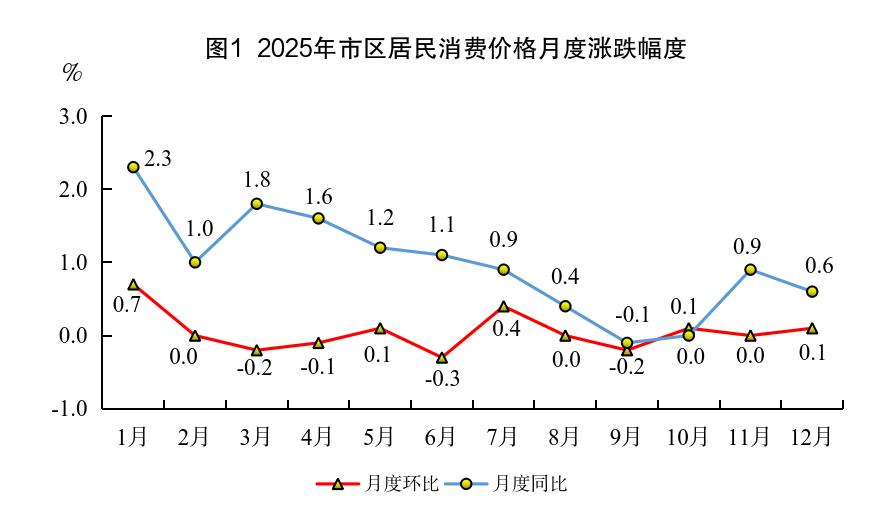 表1 2025年市区居民消费价格比上年涨跌幅度